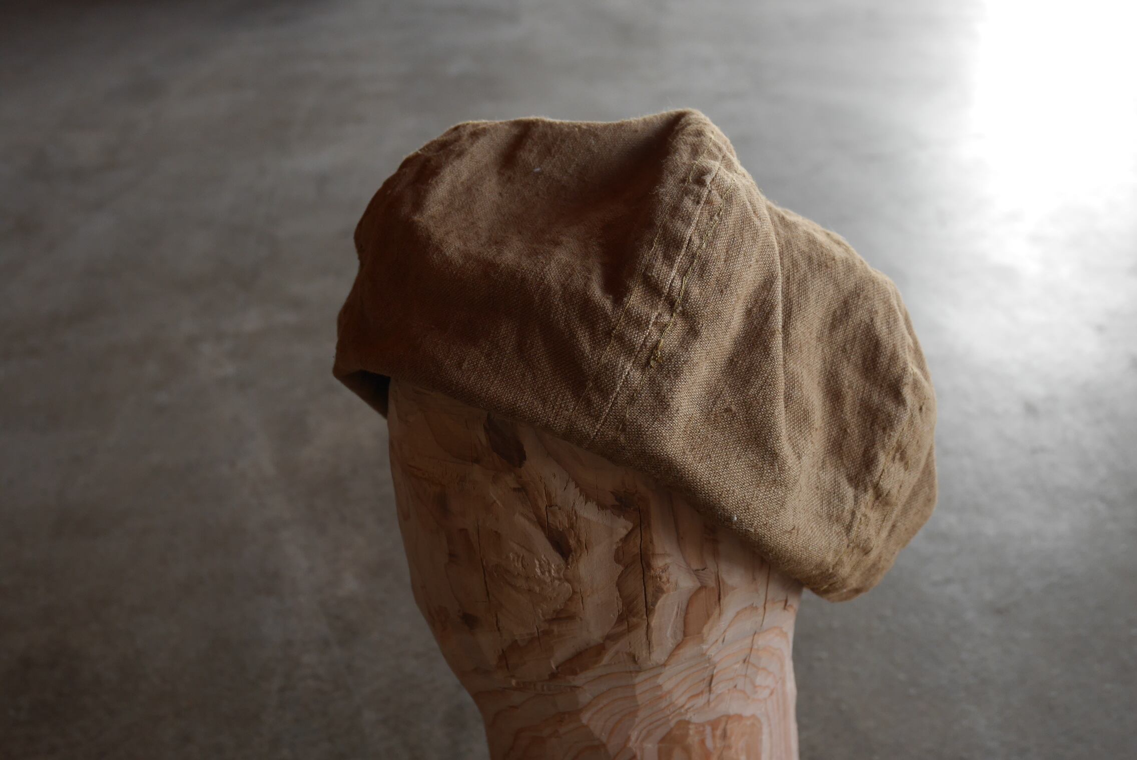 French vintage Linen Coffee dye Beret 60cm